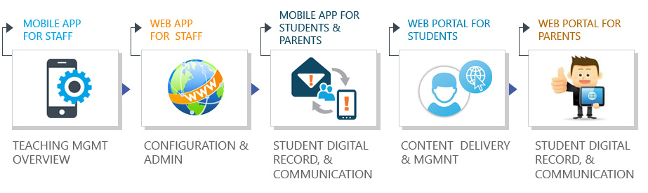 - Enables teaching staff to do their work anytime anywhere through mobile devices.